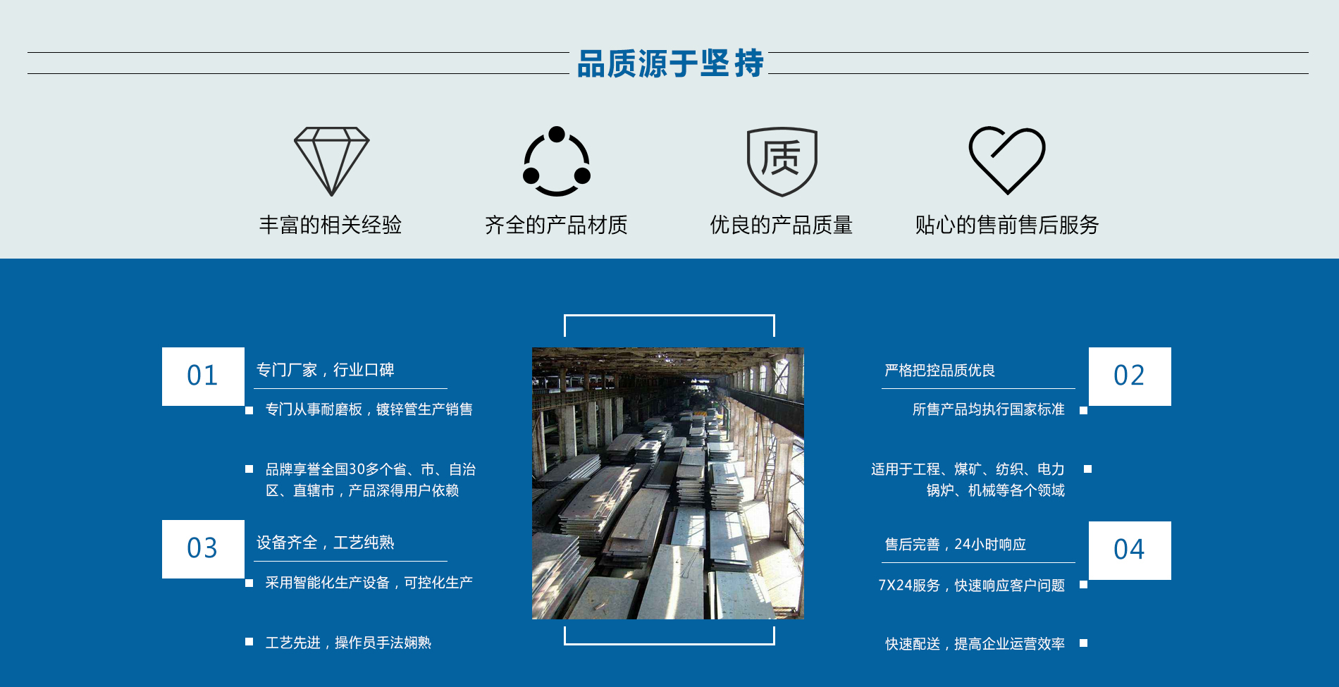 在天津采購復合耐磨板時,需要注意以下幾點:1.確認材質和厚度:耐磨板的材質和厚度直接影響其耐磨性能和..